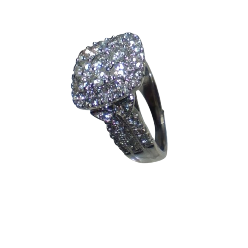 Ladies 10ct White Gold 81 stone Diamond Cluster Ring, Size O/7.25 With Valuation (NA)