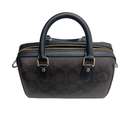 Coach Mini Rowan Crossbody Bag In Signature Canvas Walnut/Black, Excellent Condition, With Shoulder Strap (NA 1365660)