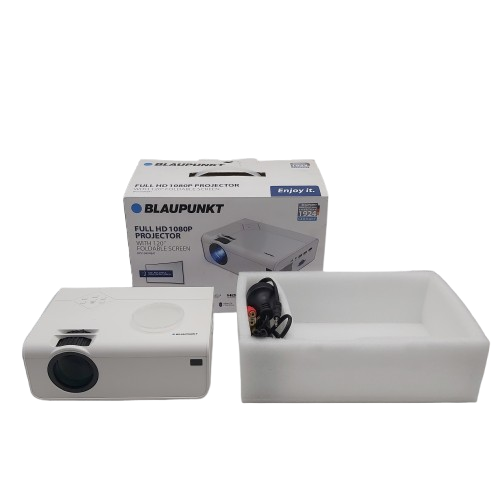 Blaupunkt BPS1080WBAT Full HD 1080p Projector, White, Good Condition, With Box, Power Cord, Remote, AV Adaptor NO SCREEN (NA 1362055)