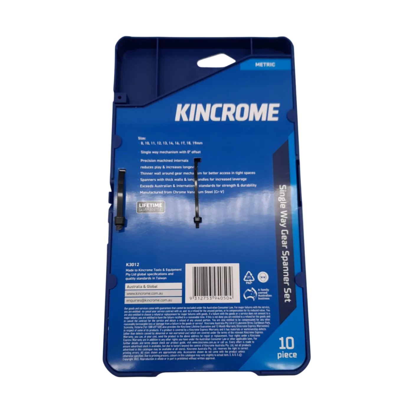 Kincrome 10-Piece Metric Gear Spanner Set K3012 Chrome As New (WR 1361782)
