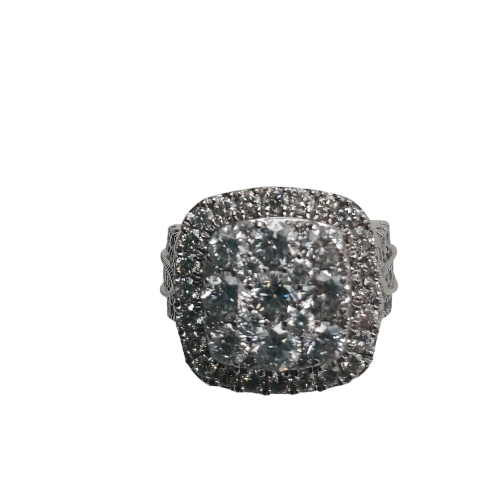 Ladies 10ct White Gold 81 Stone Diamond Cluster Ring, Size O/7.25 With Valuation (NA)